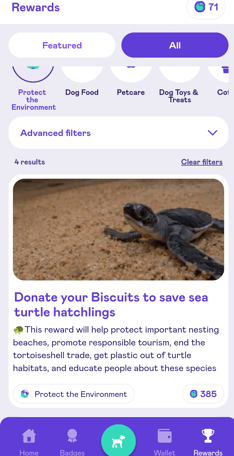 Once you have saved enough biscuits there are loads of offers available in the app to use them on such as pet care, dog treats, days out and high street shopping vouchers. In addition to these they also offer some great offers to protect the environment such as protecting marine life, turtles and wildlife habitat's. I've found the rewards don't take that long to save up for and you are basically doing what you would normally do when walking your dog but getting a small reward for doing so!